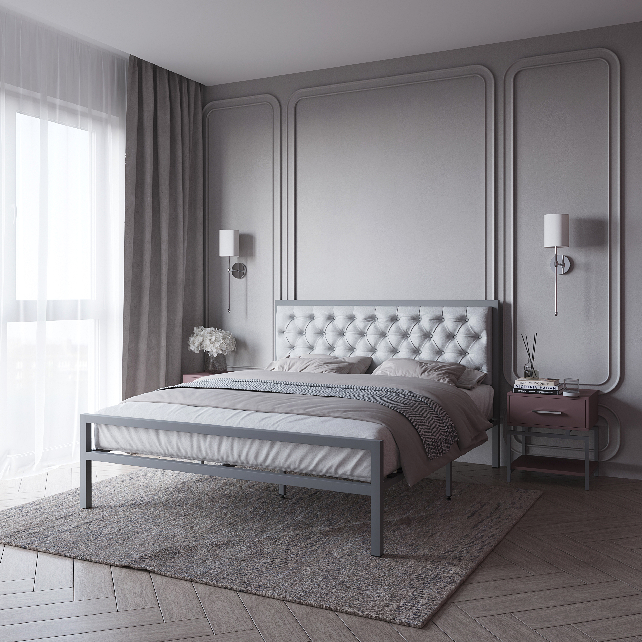 Кованая металлическая кровать Ильнара с мягким изголовьем — прекрасный выбор для комфортного сна. Изголовье с каретной стяжкой внесет роскошь и комфорт в интерьер вашей спальни! Мягкое изголовье ассоциируется с безопасностью и заботой, способствует расслаблению и повышает качество сна! На него приятно опираться при чтении книги или просмотре любимого сериала. Такая модель выглядит элегантно и уютно! Материал изголовья: экокожа либо велюр Ares. К ней отлично подойдет матрас ЭОС Тип 5а.
