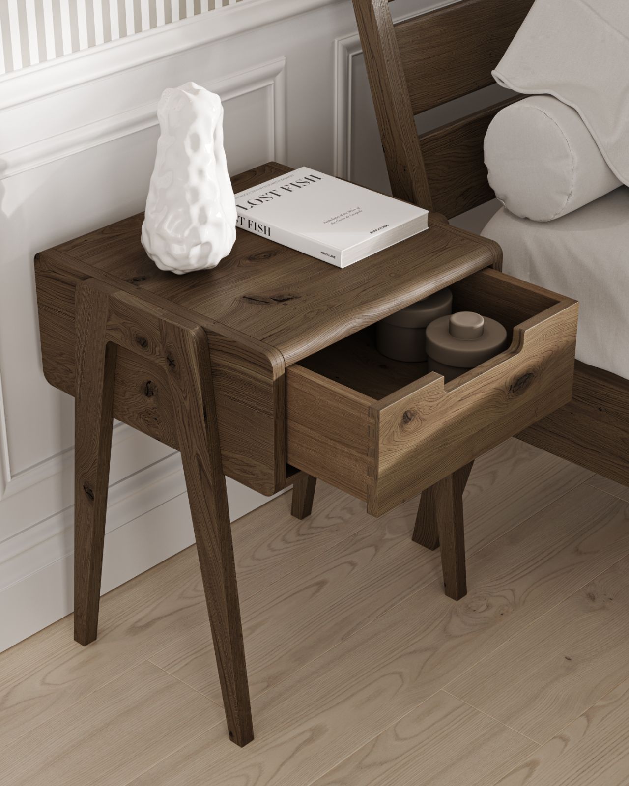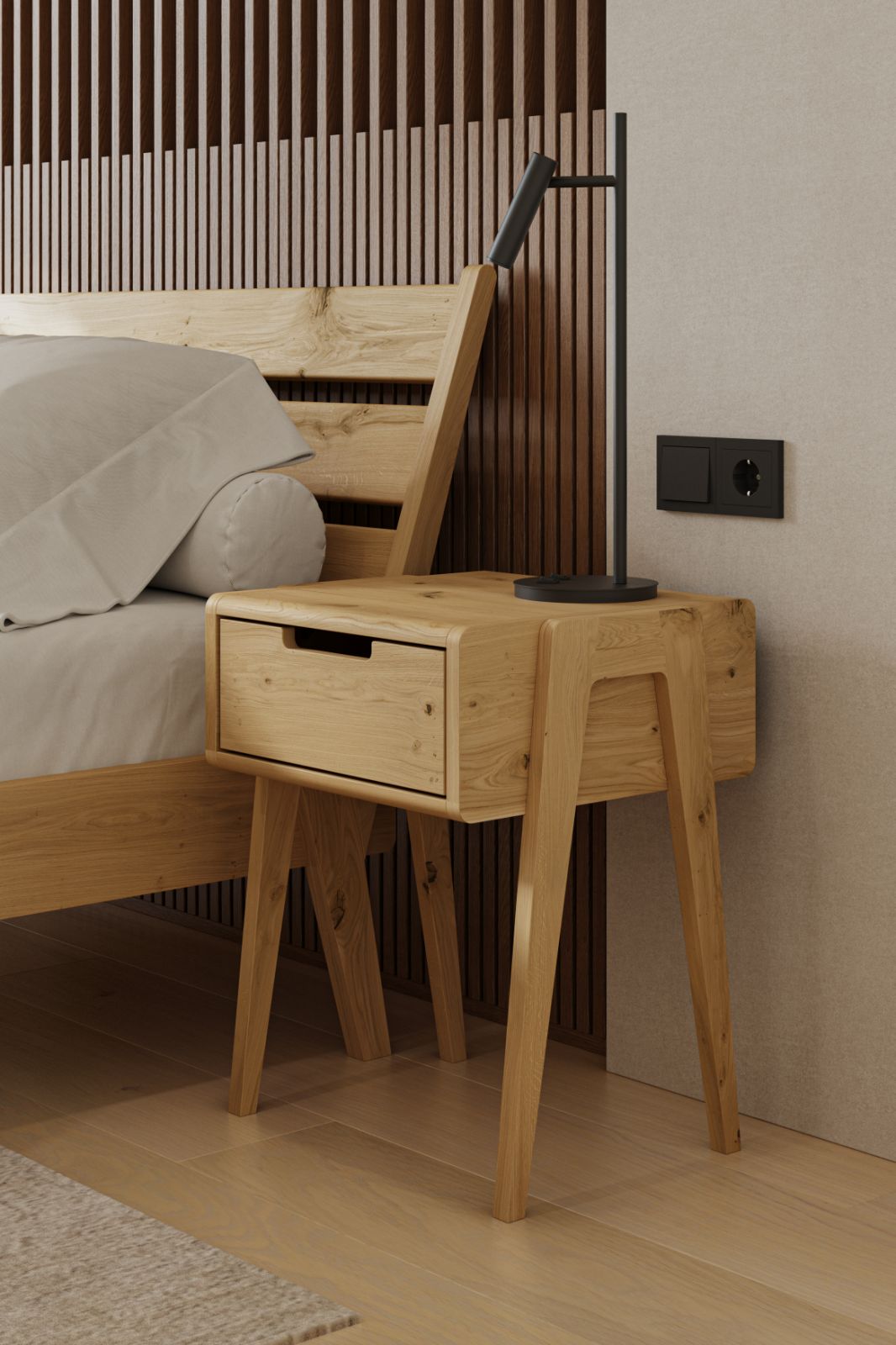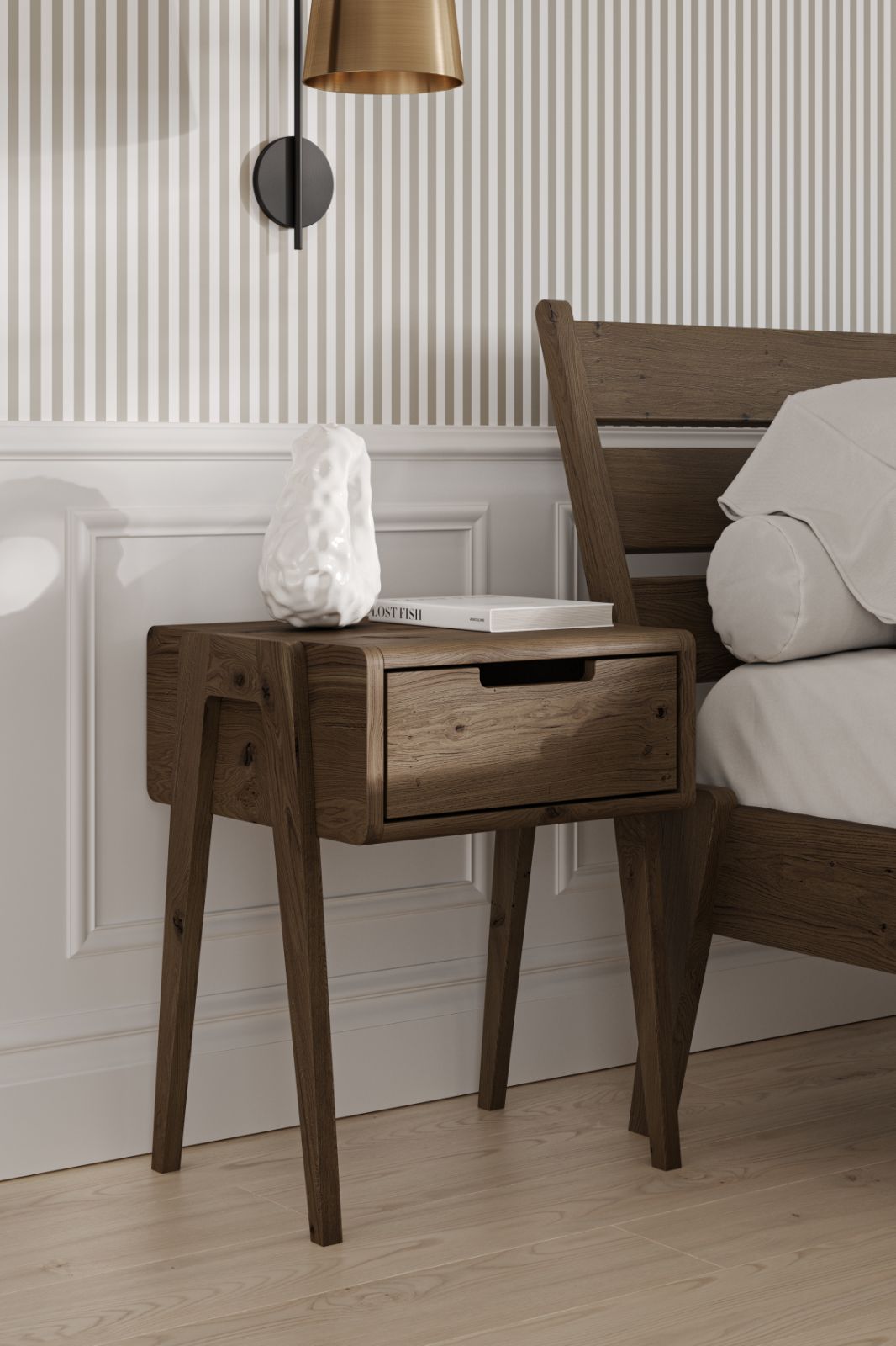 Тумбочка Тенерифе — это стильное и практичное дополнение к любой спальне. Ее конструкция выполнена из натурального дуба, что придает изделию прочность и теплую природную атмосферу. Тумба обладает компактными размерами, идеально подходящими для размещения у кровати. Внутри расположена одна вместительная раздвижная полка, позволяющая удобно хранить книги, очки, мелкие предметы и другие необходимые вещи. Поверхность тумбы гладкая и приятная на ощупь, а ее естественный рисунок дерева подчеркивает уникальность каждой детали. Такой предмет мебели станет надежным и эстетичным акцентом в интерьере спальни.
