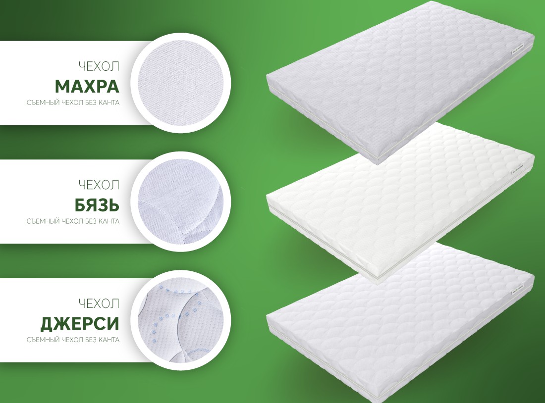 · Хлопковое полотно. Натуральный материал, состоящий из нескольких слоёв спрессованной хлопковой нити. Изолирует чехол матраса от шероховатостей других наполнителей, применяется для водной и воздушной регуляции, обеспечивает идеальный микроклимат.