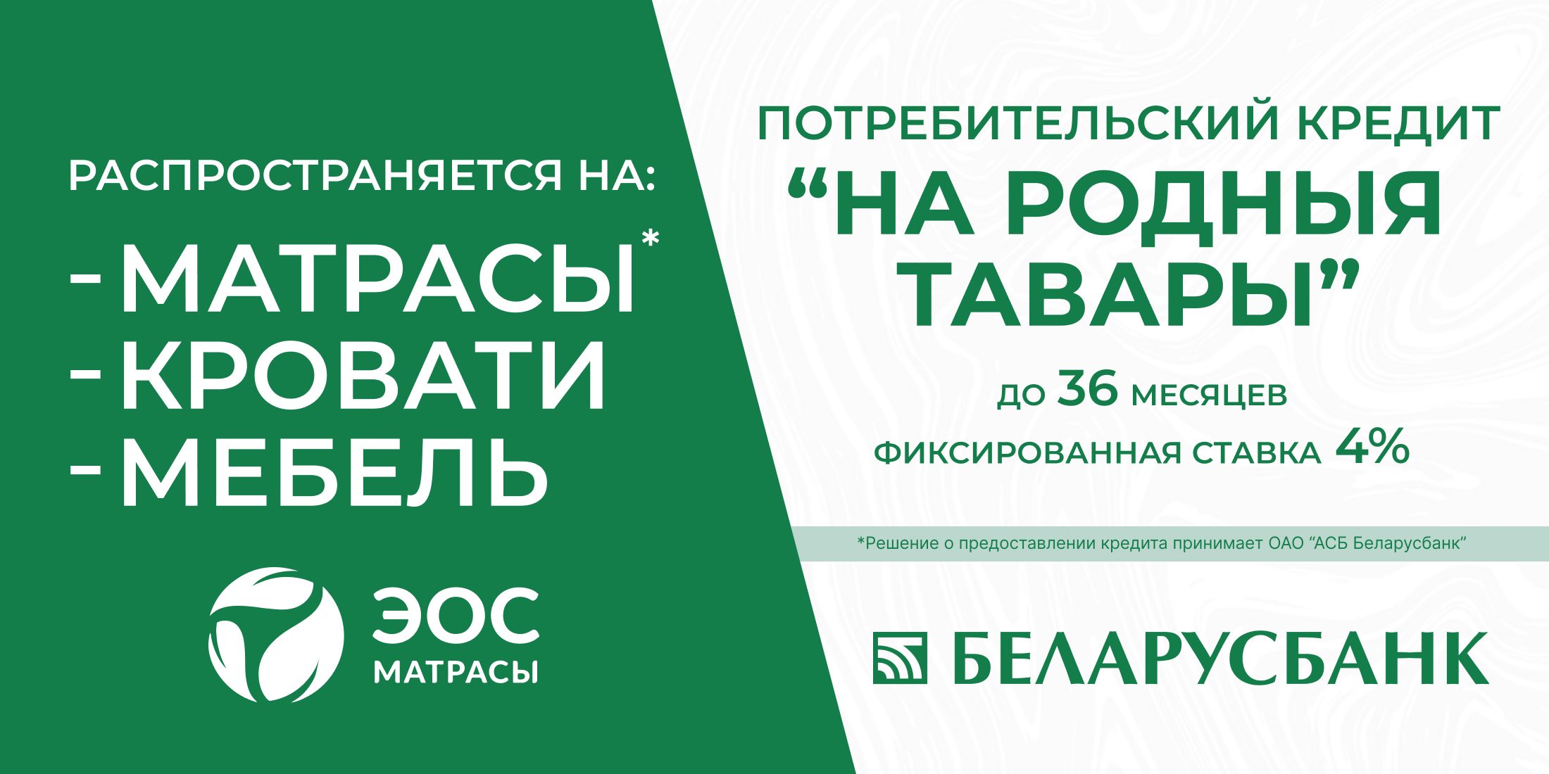 У нас есть отличные новости для всех, кто мечтает о новом матрасе или кровати! Теперь вы можете купить их в кредит под 4% годовых на срок до 36 месяцев!